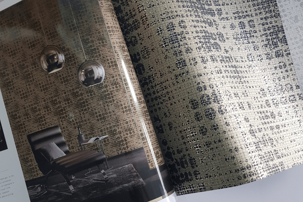 The VERDI wallpaper collection features textures that reflect luxury, adding a new dimension to your walls. The designs blend modern aesthetics with natural textures, ranging from graphic patterns to warm, natural motifs like leaf designs, floral patterns, woven fabric textures, geometric lines, and concrete patterns. These wallpapers bring a modern luxurious feel, enhanced by metallic gold and silver prints that create depth and vibrancy. The way the light interacts with these textures brings the walls to life, adding a sophisticated, upscale touch to your space.