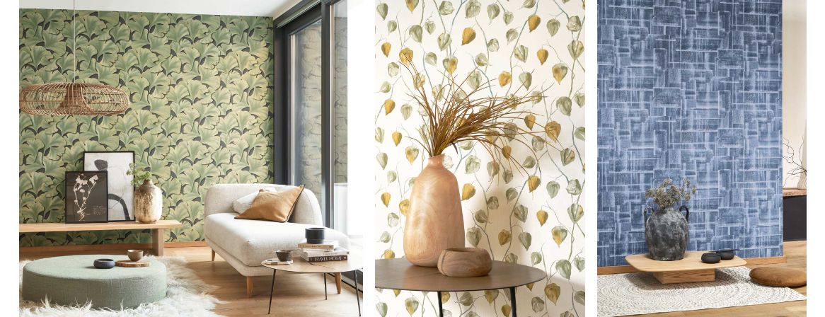 «ใบแปะก๊วย» มาเป็นต้นแบบในการออกแบบวอลเปเปอร์ติดผนังในสไตล์ภาพพิมพ์แกะสลักไม้ มีเท็กซ์เจอร์และสีพิเศษพิมพ์ทอง วอลเปเปอร์ลายขัดสานศิลปะงานคราฟ วอลเปเปอร์ลายมัดย้อม และวอลเปเปอร์ภาพเซ็ตลายโครงจักรสานขนาดใหญ่ ให้กลิ่นอายวิถีญี่ปุ่นโบราณ บนไลฟ์สไตล์ยุคใหม่ ช่วยให้บ้านมีบรรยากาศแห่งความอบอุ่น เป็นมิตรกับธรรมชาติและสิ่งแวดล้อม