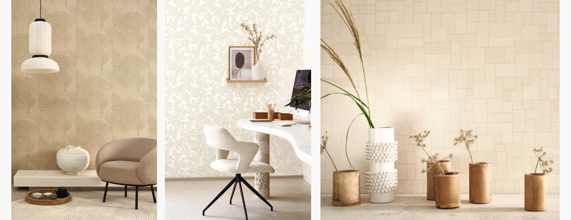 ธีมลายของวอลเปเปอร์ ให้ความสำคัญกับอารมณ์และความรู้สึก ปรับพื้นที่อยู่อาศัยให้มีบรรยากาศอบอุ่น เป็นมิตรกับธรรมชาติและสิ่งแวดล้อม โดยมีลายเด่นๆ เช่น วอลเปเปอร์ภาพเซ็ตจิตรกรรมฝาผนัง ภาพวาดพิธีชงชาโบราณ และลายภาพวาดสวนญี่ปุ่นที่สวยงาม รวมไปถึงวอลเปเปอร์ลายเส้นเรขาคณิตที่เรียบง่าย และวอลเปเปอร์ลายไม้ สไตล์เนเชอรัล