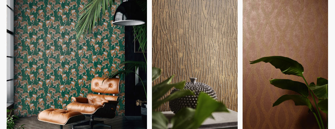 ผสมผสานความหรูหราและความแปลกใหม่เข้าด้วยกันอย่างลงตัว วอลเปเปอร์ในคอลเลคชั่นนี้มีลวดลายที่หลากหลาย เช่นลายเสือที่เพิ่มความเป็นธรรมชาติและความแปลกใหม่ให้กับพื้นที่ ไปจนถึงลวดลายกราฟิกสะท้อนถึงความคลาสสิกและสง่างาม พื้นผิวพิเศษมีการตกแต่งด้วยทรายควอตซ์ สร้างประกายเงางาม ดึงดูดสายตาและเพิ่มมิติให้กับผนัง สีเอิร์ธโทนที่อบอุ่น ไปจนถึงสีเมทัลลิกที่เพิ่มความหรูหรา