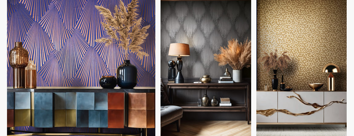 โดดเด่นด้วยพื้นผิว และเอฟเฟกต์โลหะสะท้อนแสง ประดับคริสตัลช่วยยกระดับบรรยากาศให้ทั้งหรูหราและอ่อนช้อย สร้างมิติของเงาอย่างสวยงาม ช่วยให้พื้นที่ดูหรูหรา มีประกาย และเต็มไปด้วยความลึกของดีเทล ทุกเฉดสีตั้งแต่พาสเทล สีน้ำเงินรอยัล ไปจนถึงโทนเมทัลลิกสุดหรู