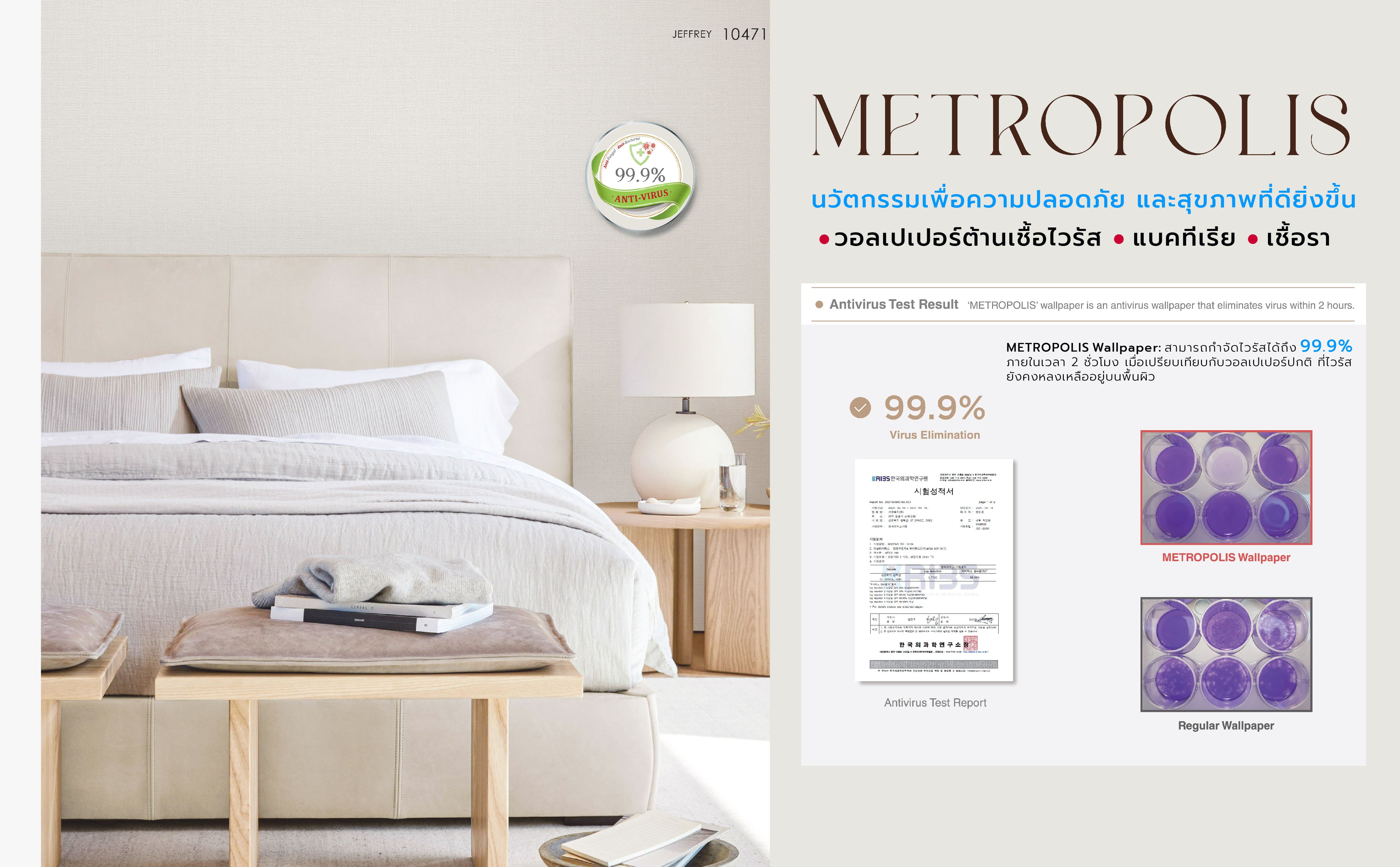 ผลการทดสอบ วอลเปเปอร์ METROPOLIS สามารถกำจัดไวรัสได้ถึง 99.9%