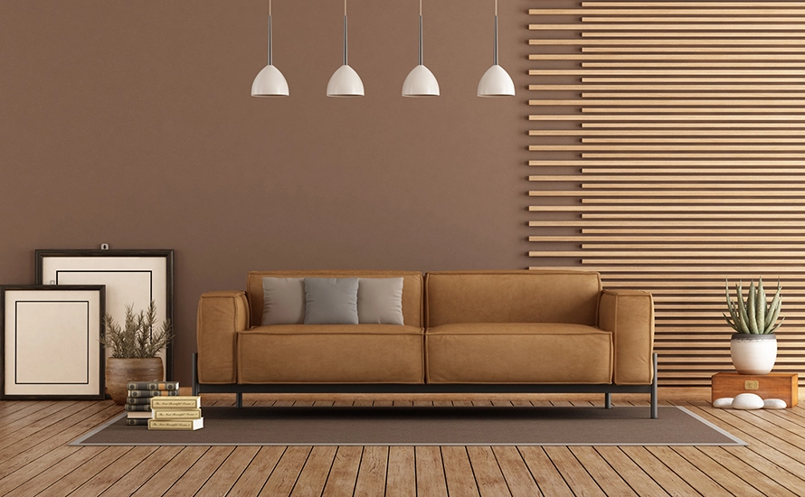 • เลือกโซฟาหนัง หรือเก้าอี้ที่บุผ้าสี Mocha Mousse หรือสีใกล้เคียง เช่น สีน้ำตาลอ่อน สีเทาอมครีม