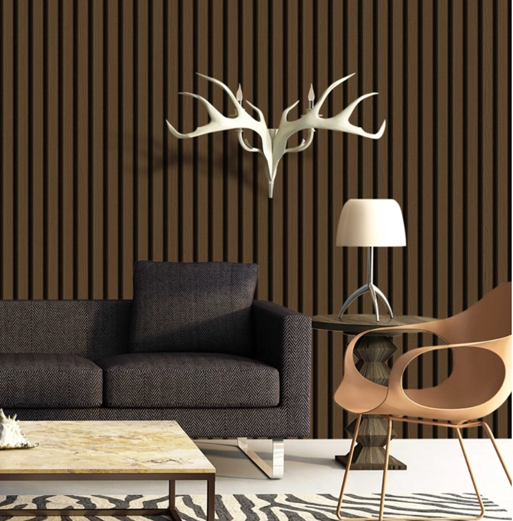 Style 1 : ใช้วอลเปเปอร์ติดผนังสีน้ำตาล โทนสี Mocha Mousse ผสานกับพื้นไม้ ตกแต่งด้วยไม้ระแนง ซึ่งจะช่วยให้ดูอบอุ่น สงบ และเป็นธรรมชาติมากขึ้น
