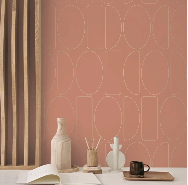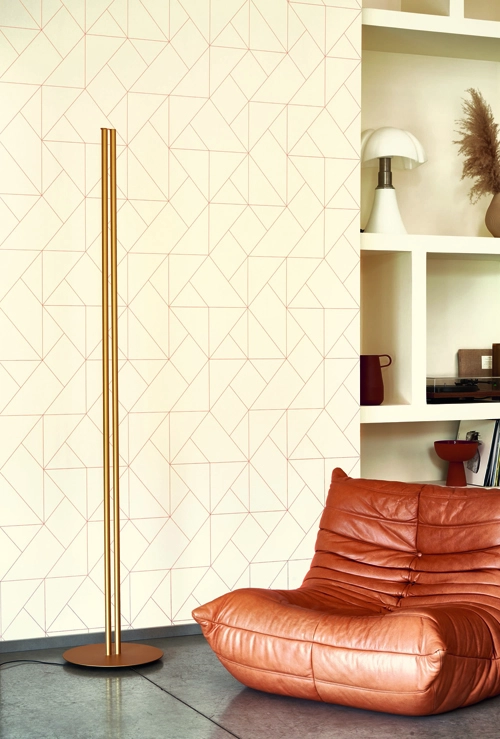 และถ้าหากคุณต้องการให้ผนังมีความมินิมอลดูเก๋มากขึ้น ก็สามารถเลือกวอลเปเปอร์สีน้ำตาล ลายกราฟิกสไตล์มินิมอล เข้าตกแต่งให้ดูร่วมสมัยขึ้น ซึ่งวอลเปเปอร์คอลเลคชั่น Alchimie ก็มีให้เลือกเช่นกันครับ