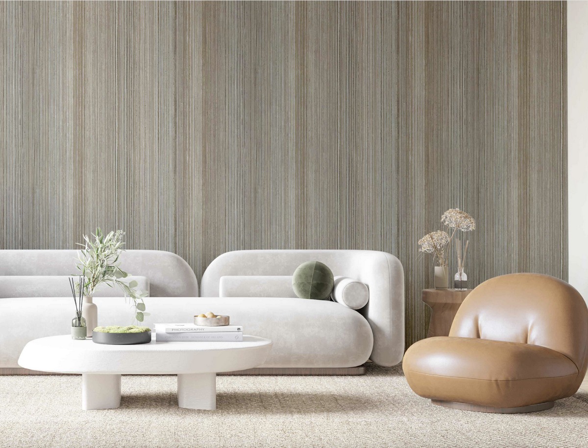 วอลเปเปอร์ลายธรรมชาติ สไตล์ Modern Natural ออกแบบด้วยแรงบันดาลในใจที่ต้องการเชื่อมโยงดีไซน์กับธรรมชาติด้วยเส้นสายเรียบง่าย เลือกใช้โทนสีแนว earth tone อย่าง taupe และ sage green ซึ่งเป็นสีที่ช่วยให้บรรยากาศรู้สึกผ่อนคลาย เรียบง่าย อยู่สบาย และทันสมัยไปพร้อมๆกัน